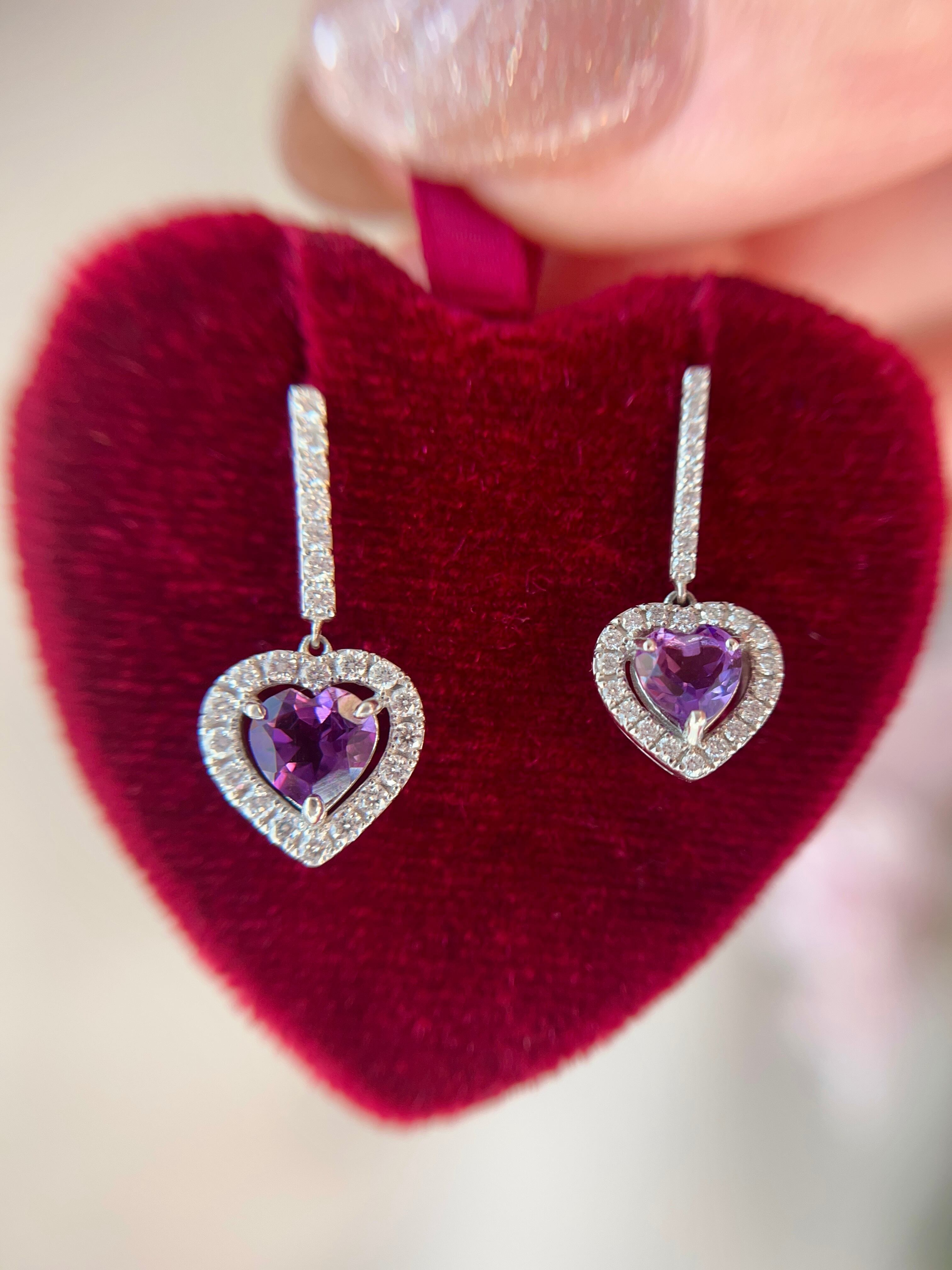【石】アメシスト 【素材】Pt950 【石目】アメシスト1.2ct/ダイヤ0.66ct 【サイズ】12×12㎜ 【垂れ下がり部分】13×1.7㎜