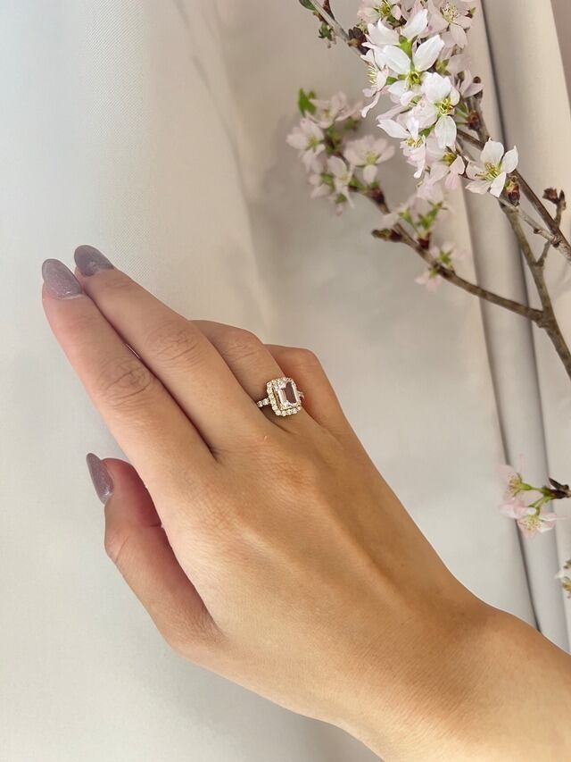【石】モルガナイト 【素材】K18PG 【石目】モルガナイト1.27ct/ダイヤ0.55ct 【サイズ】縦11×横10㎜ 【色味】B 【色味指標】 A→モルガのイメージ通りの淡いピンク B→Aよりさらに淡いピンク C→茶色がかったピンク