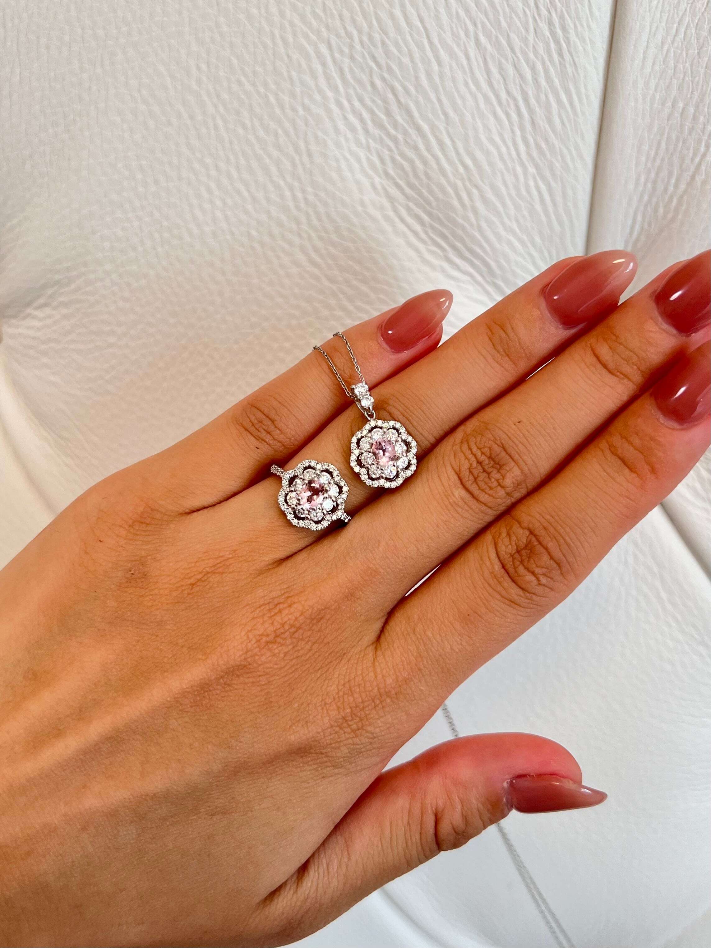 【中石】モルガナイト0.3ct前後 【脇石】ダイヤ0.5ct前後 【素材】Pt950/K18YG/K18PG 【サイズ】縦12.5×横12.5㎜ 【ダイヤ品質】Gup、SImix 【納期】15営業日以内発送 【着用写真】ルビー